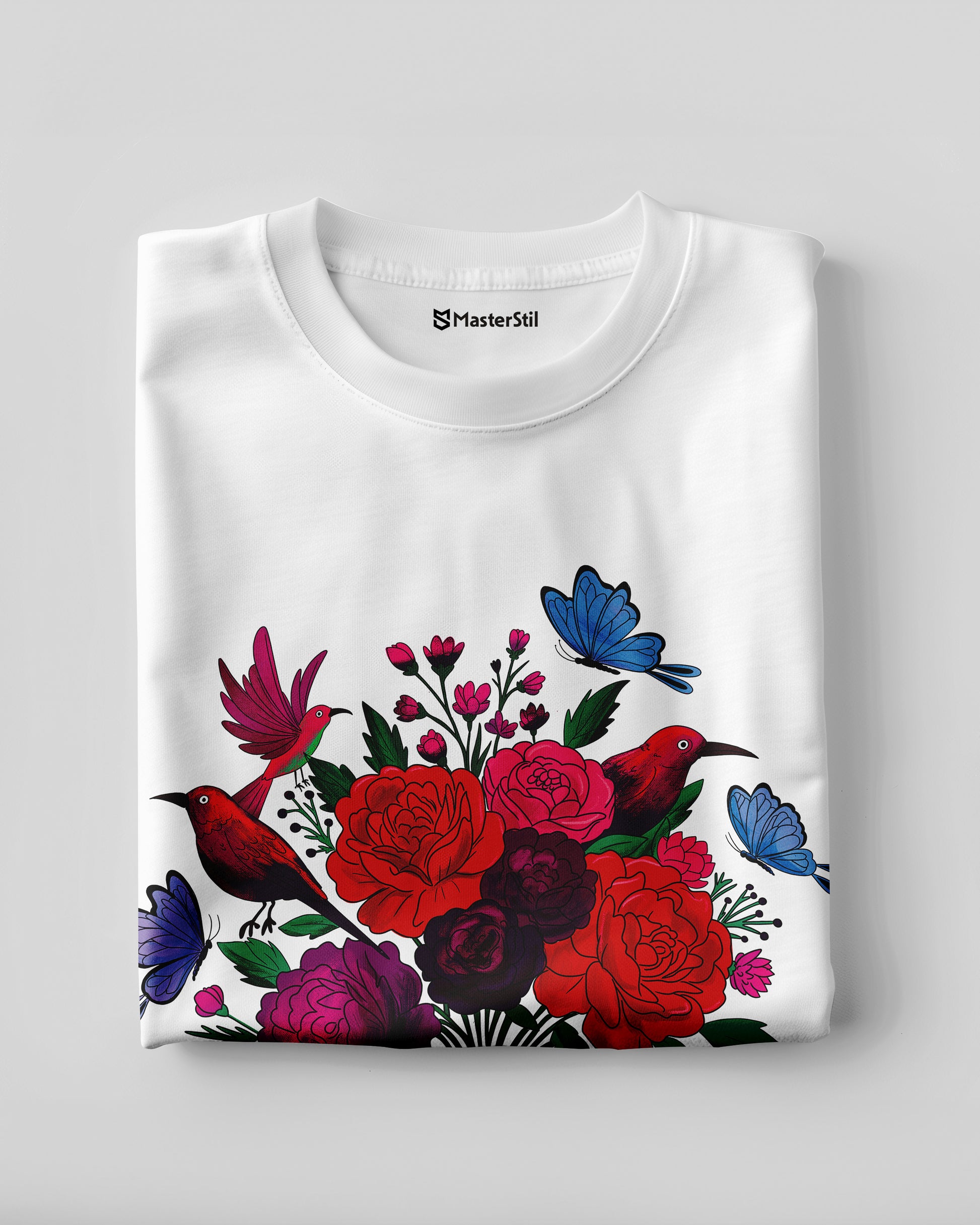 A timeless floral bouquet… but this time, there's a delicate touch between life and death! Flowers, butterflies, and birds in dazzling colors meet a skeletal hand, offering a unique contrast. "Silent Bloom" is designed for both romantic and contemplative souls.