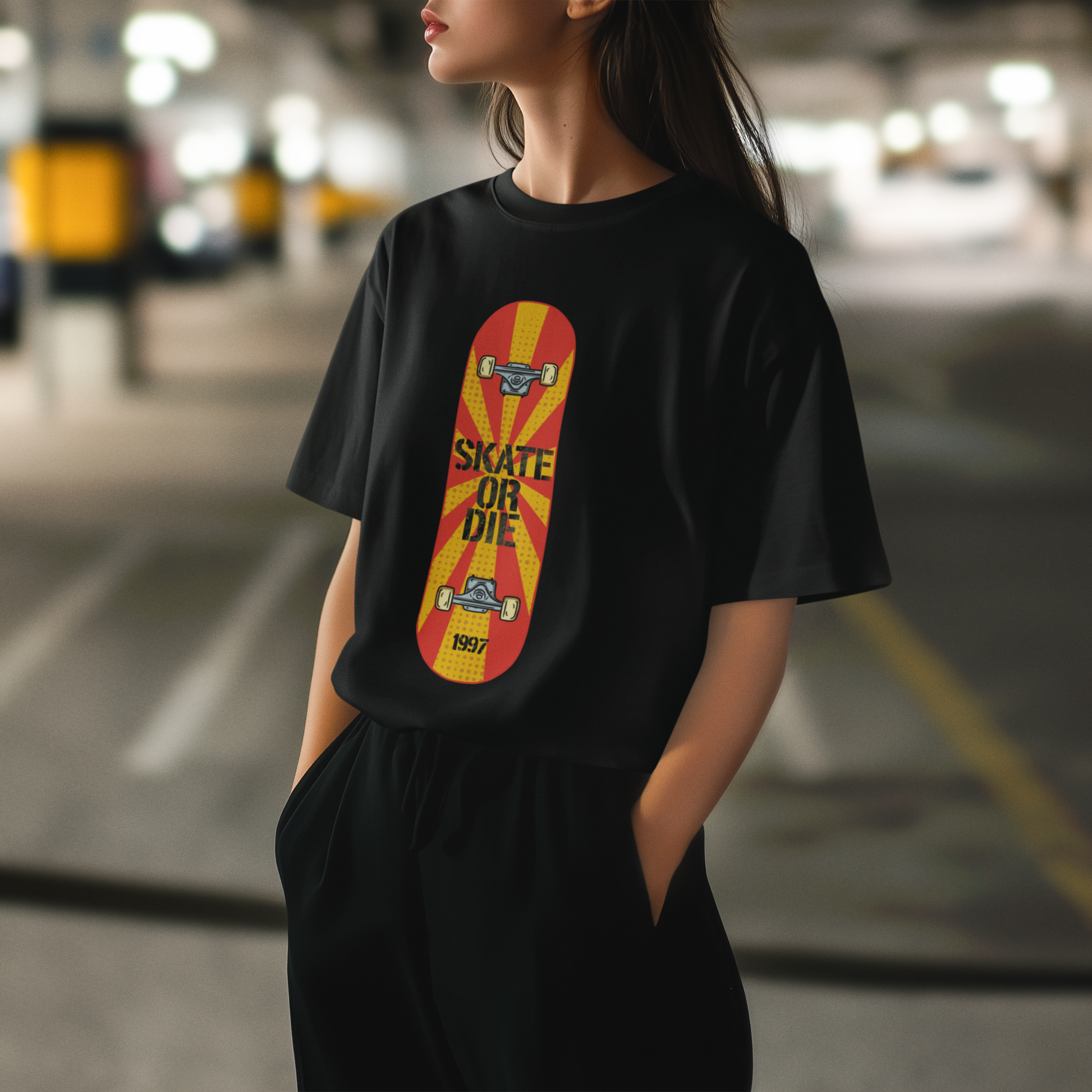 Skate or Die 1997 – Retro Skateboard Spirit PopArt T-Shirt Oversize 100% Cotton | Unisex Streetwear Style