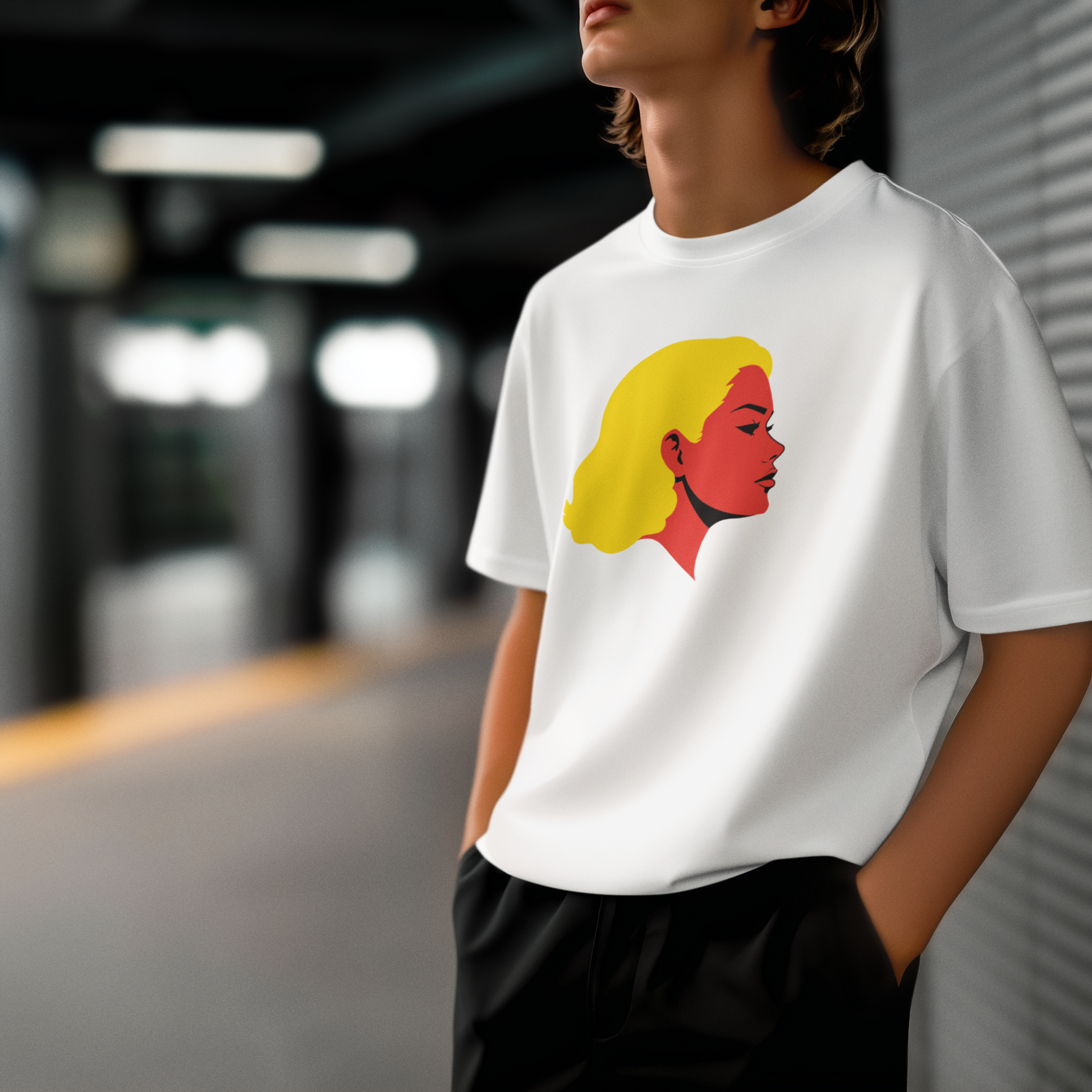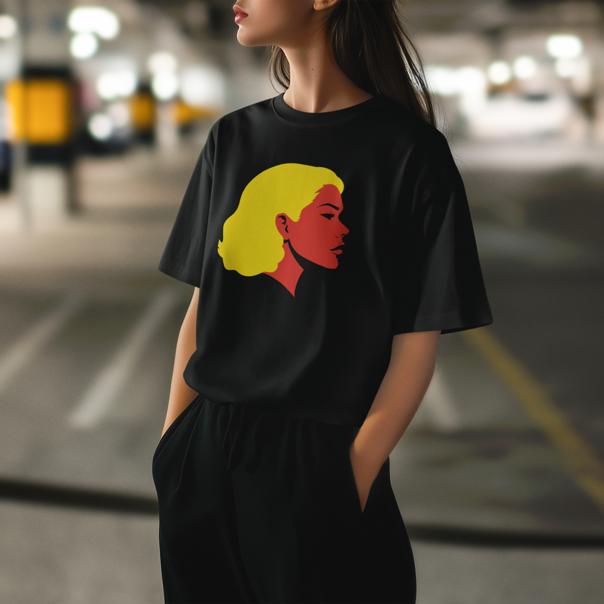Golden Muse – Sarı Saçlı PopArt Kadın Tişört | Oversize | Retro Glam Stil